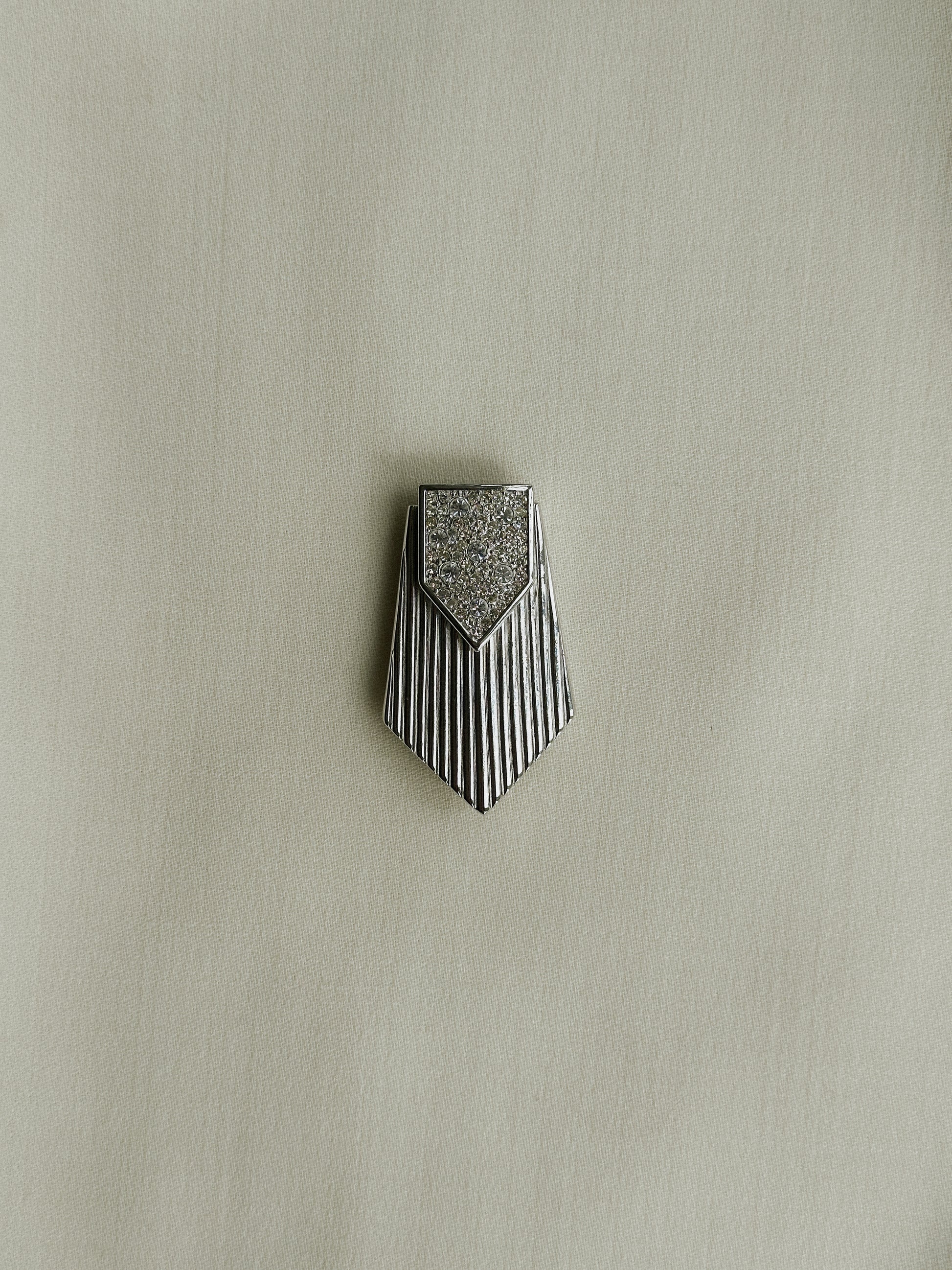 A vintage silver tone and rhinestone Christian Dior brooch pin. 3” long and 1” wide. Very good vintage condition. The brooch also has a small loop so it can abe worn as a pendant for necklace as well as a brooch.