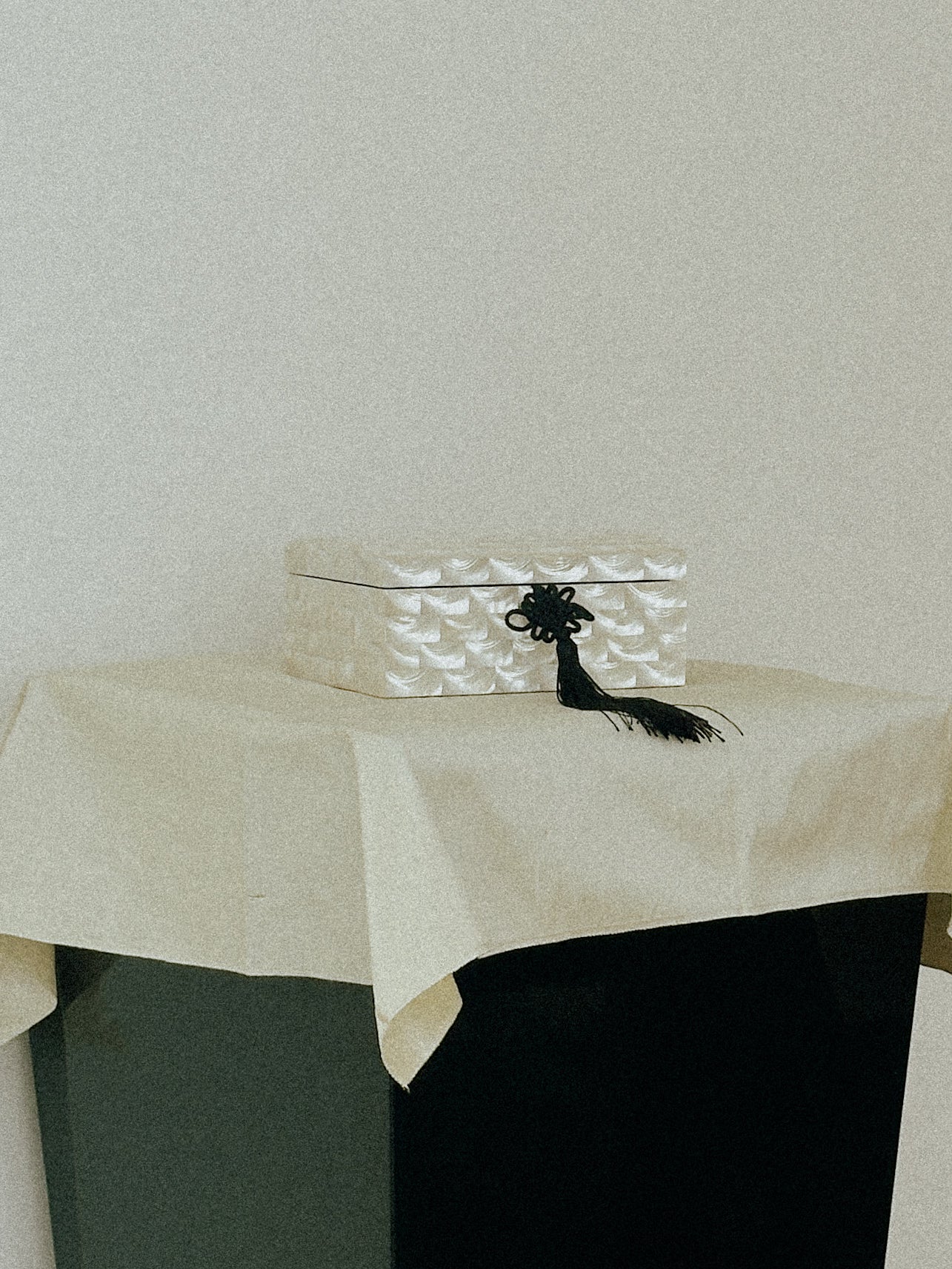 A stunning vintage mother of pearl jewelry box with red velvet interior and frog tassel. 7”x5”x3”. Good vintage condition, some light signs of wear, consistent with age.