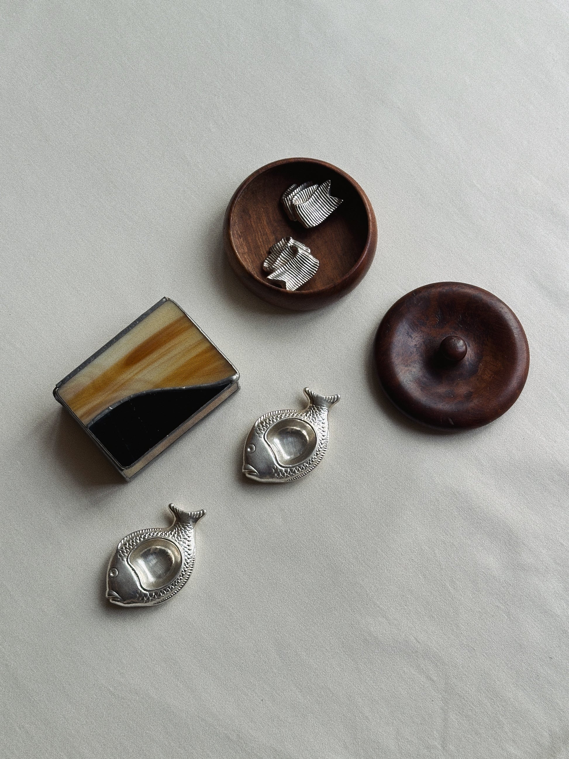 A beautiful vintage stained glass jewelry box with a mirrored inside and pewter edges. 2”x3.25”x1”. Good vintage condition, some signs of wear consistent with age.